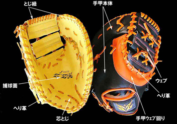 ・硬式・軟式ともにオーダーグラブ用の最高級レザー・部材を使用していますので、素材の良さを損なう恐れがあると思われる加工方法はお勧めしていません。
