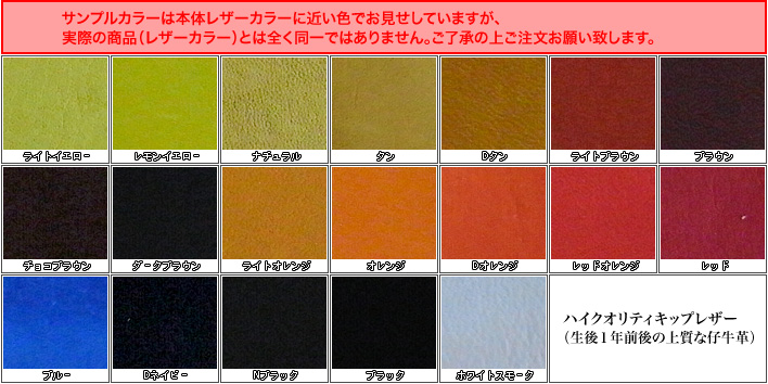 | 本体レザーカラー | キップレザーまたはステアレザーより1色選択 |