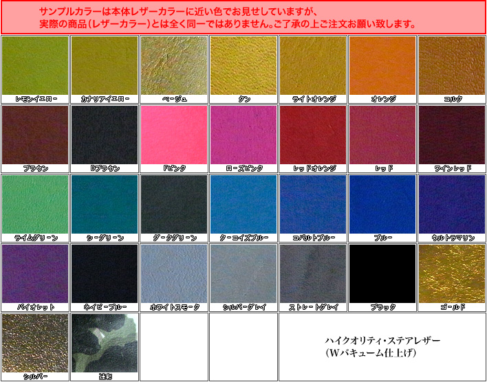 | 本体レザーカラー | ステアレザーより1色選択 |
