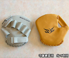 ※守備練習用 当て取用 硬式・軟式兼用:¥13,000 ※守備練習用 グラブ型 硬式用 ¥19,000(ワッペンマーク) ¥18,500(手首バンド部焼き印) 軟式用 ¥16,000(ワッペンマーク) ¥15,500(手首バンド部焼き印) |