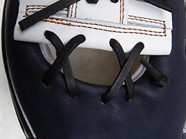 逆巻きは親指側から小指側へ紐を通すことにより捕球面が小指側に広がり、よりワイドなポケットになります。