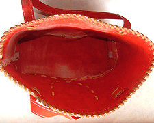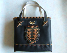 オーダーグラブ用キップレザー使用 大きさ:ヨコ約33cm×タテ約30cm×幅約10cm フチ・サイド・底部はグラブのとじ紐で強度UP 中央部ウェブはポケットにグラブ用ワッペン・ブランドロゴ焼印・職人さん名焼印付き バッグ内側は革裏(スウェード)そのまま 肩紐裏側は色落ちしにくいハンドバッグ用の高級牛ソフト使用 (注)グラブ用の革をそのまま使用していますので、色落ちする恐れがあります |