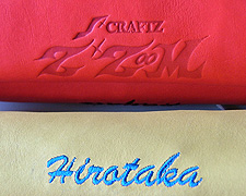 [a] オーダーグラブ用キップレザー(¥3,150) [b] 最高級牛ソフト(高級ハンドバッグなどに使われる、軽量でしなやかな肌触りの牛革)(¥2,500) |